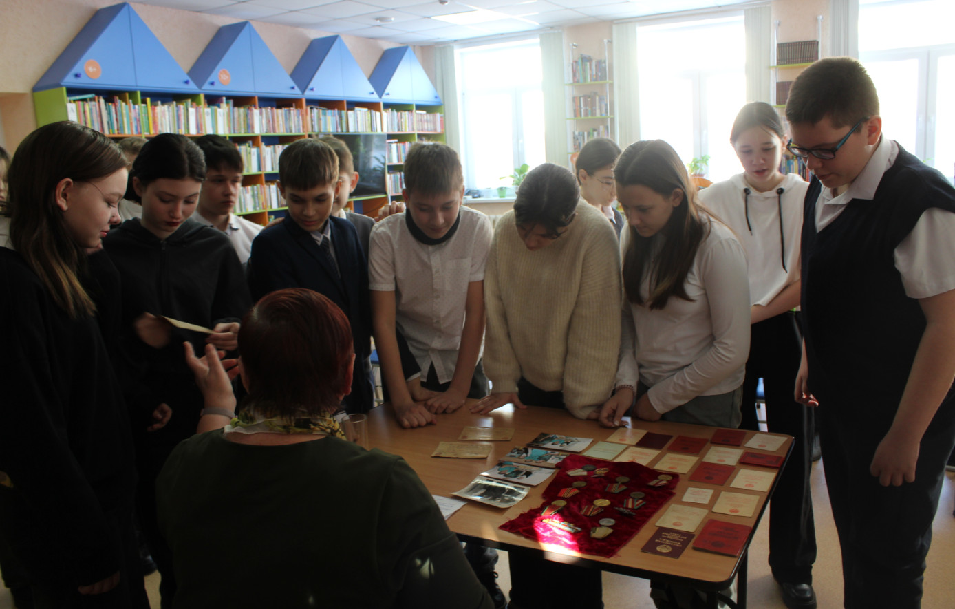 В рамках проекта «Живет Победа в поколениях» 19 февраля сотрудники модельной библиотеки пригласили на встречу со школьниками жительницу нашего города Т.А. Дырдину.