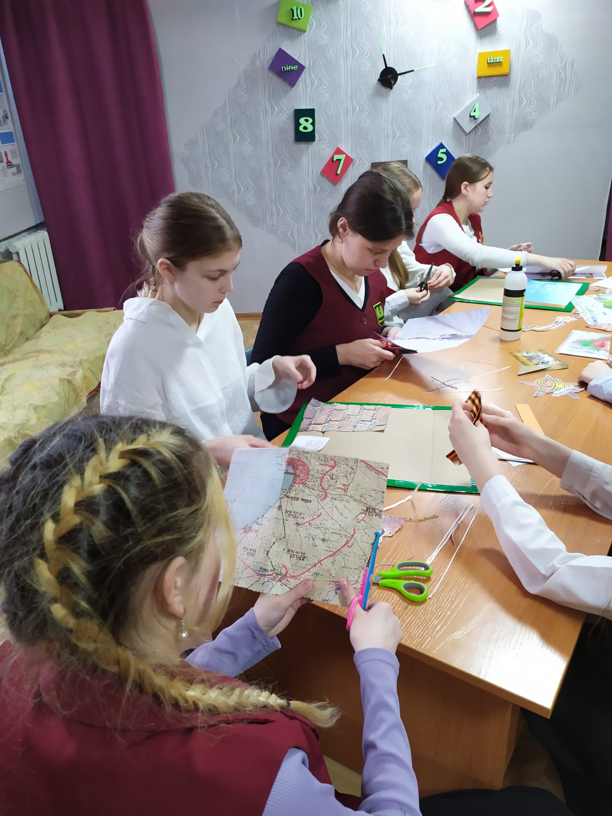 С энтузиазмом школьники работали вместе: оформляя страницы, раскладывая элементы согласно эскизу и выбирая самые подходящие детали.