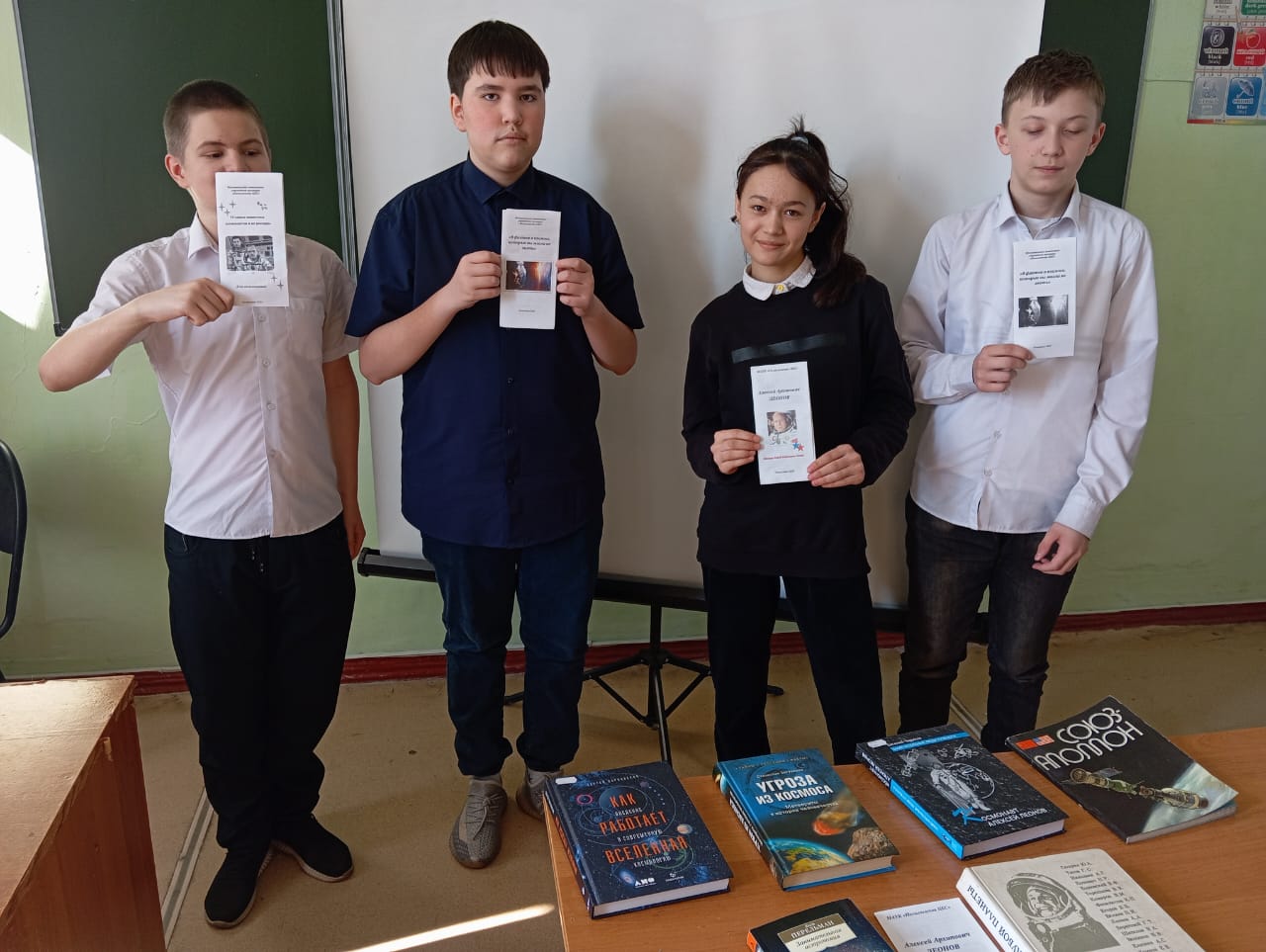 10 апреля в школе № 35 для учащихся 7-х классов библиотекарь центральной городской библиотеки провела час-портрет «Первый среди первых – А. А. Леонов», посвящённый Дню Космонавтики.