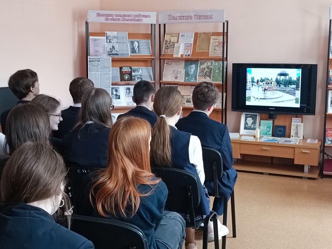 18 апреля 2025 года библиотекарь краеведческого отдела центральной городской библиотеки Т.Т. Карюкина рассказала восьмиклассникам школы № 44 о памятных местах нашего города Полысаево, среди которых обелиск «Памяти павших во время Великой Отечественной войны, в локальных войнах и военных конфликтах», обелиск, посвященный героям – краснодонцам, членам подпольной организации «Молодая гвардия», обелиск «Погибшим воинам-землякам в годы Великой Отечественной войны 1941-1945 гг., памятник погибшим шахтерам.