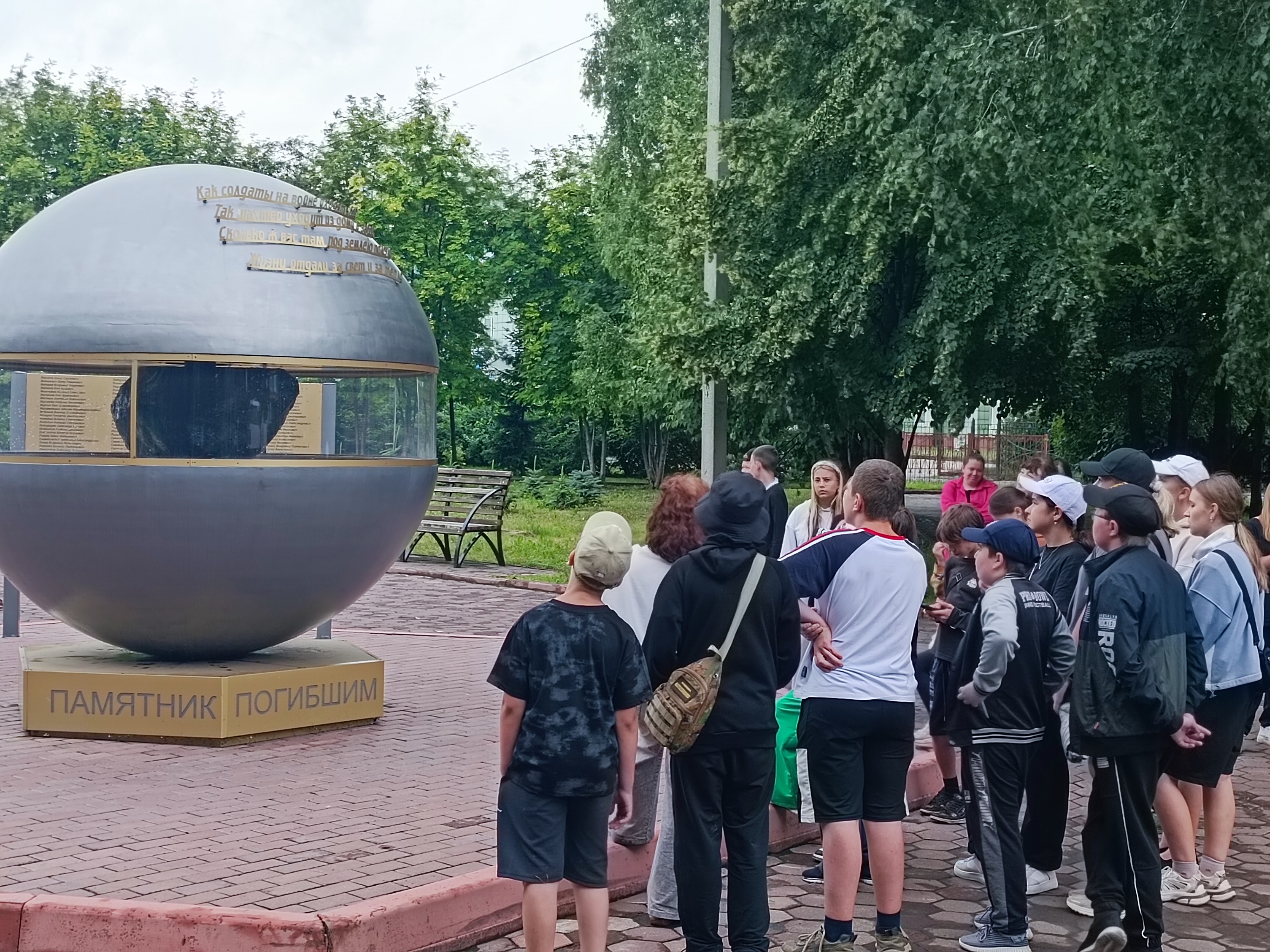 Ребята посетили сквер Памяти, на территории которого установлены обелиск «Памяти, павших во время Великой Отечественной войны, в локальных войнах и военных конфликтах», памятник погибшим шахтерам, часовня Покрова Божией Матери. Узнали интересные факты из истории улиц этого района, клуба Шахтостроителей, школы № 9, библиотеки.