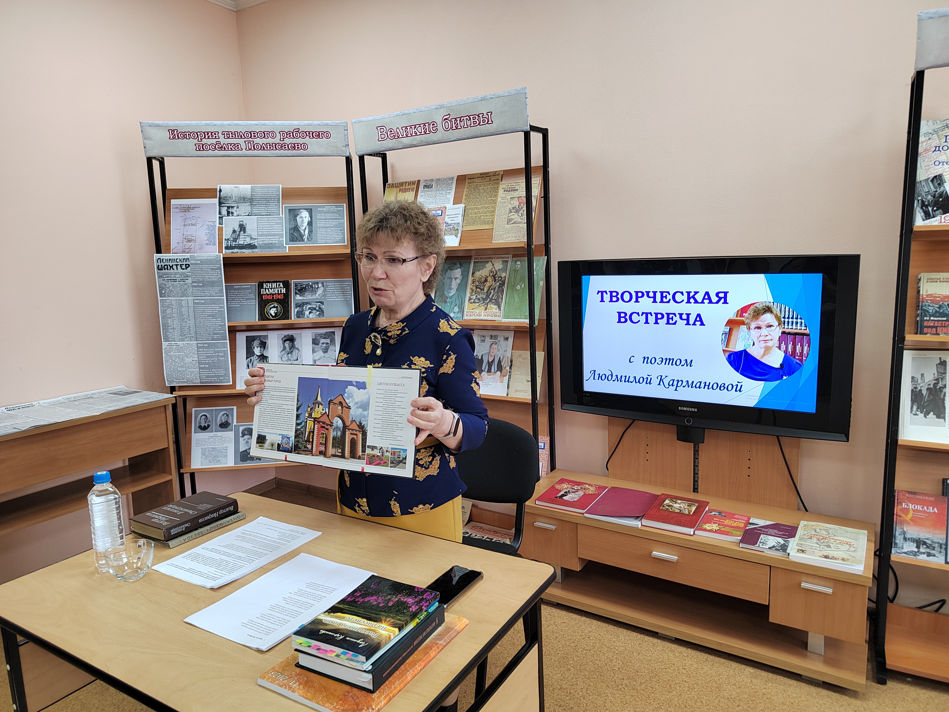20 марта в преддверии Всемирного дня поэзии в Центральной городской библиотеке для студентов Ленинск-Кузнецкого горнотехнического техникума г. Полысаево состоялась творческая встреча с Людмилой Афанасьевной Кармановой, одним из талантливых участников литературной группы «Прометей».