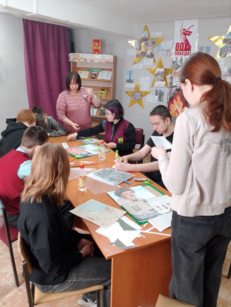 26 апреля в библиотеке-филиале №3, в рамках Всероссийской акции «Библионочь-2025», прошла творческая мастерская «Я помню! Я горжусь!», где учащиеся школы №32 погрузились в создание страниц альбома «Герои наших улиц».