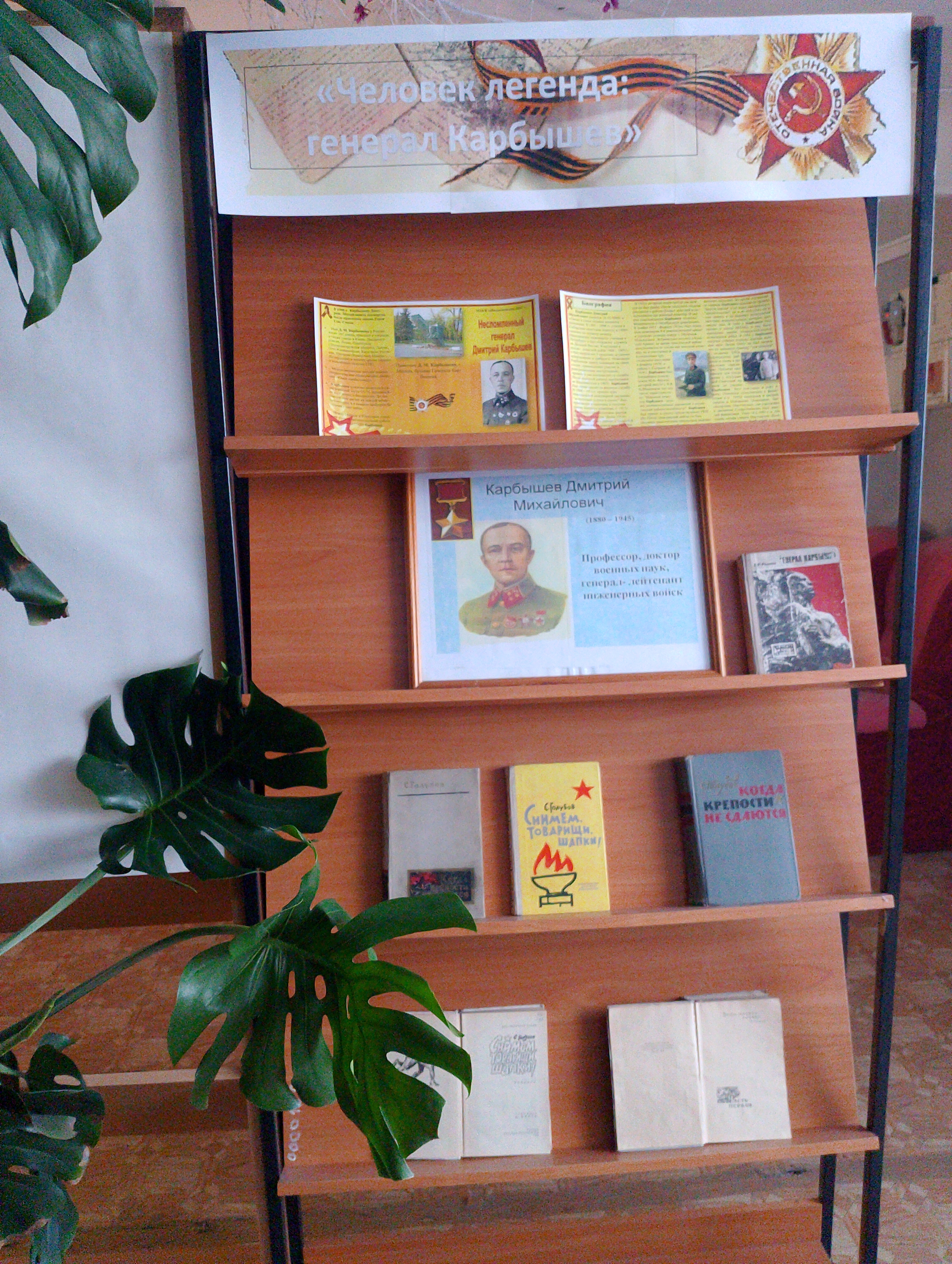 В библиотеке-филиале №3 города Полысаево открыта выставка-портрет «Человек-легенда: генерал Карбышев», посвящённая подвигу прославленного советского военачальника Дмитрия Михайловича Карбышева.